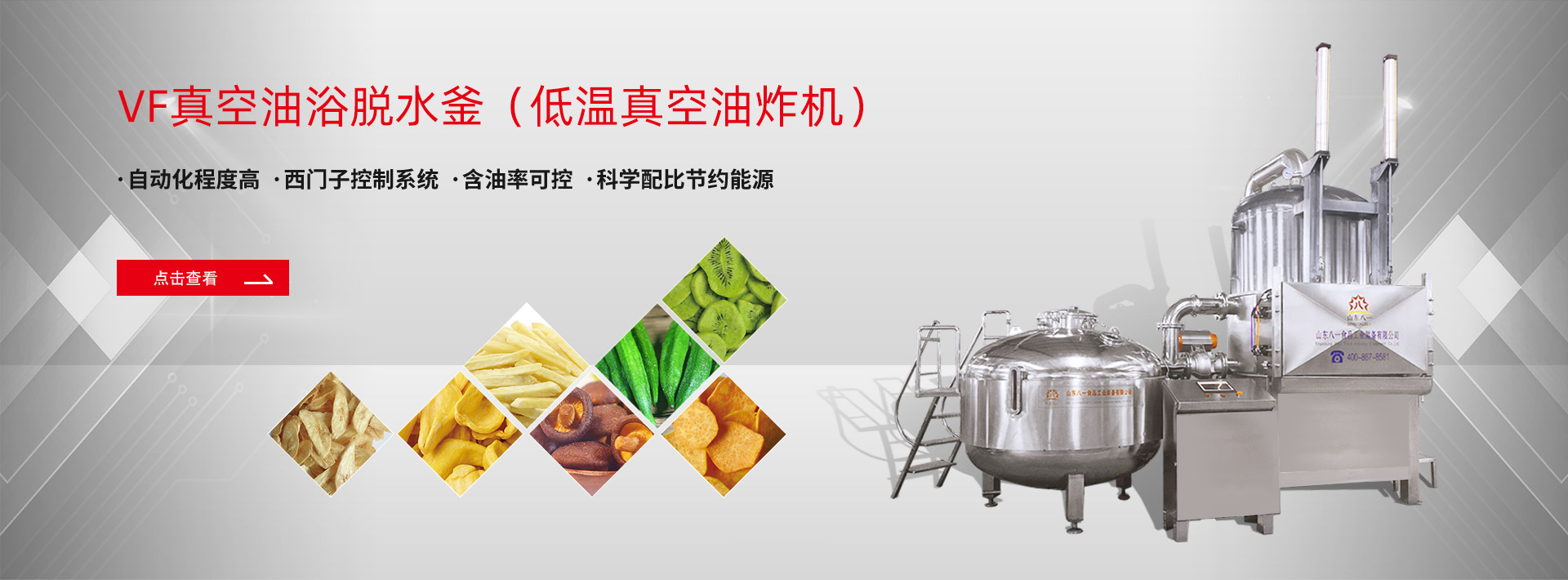 公司專(zhuān)注于真空油炸機(jī)、凍干機(jī)、高溫油炸線(xiàn)、休閑食品、薯?xiàng)l薯片、膨化食品、魚(yú)肉類(lèi)、干果食品類(lèi)、調(diào)理食品、糕點(diǎn)烘培、蔬菜加工、玉米加工等食品油炸設(shè)備的研發(fā)、制造、銷(xiāo)售,并提供完善的售后服務(wù)。